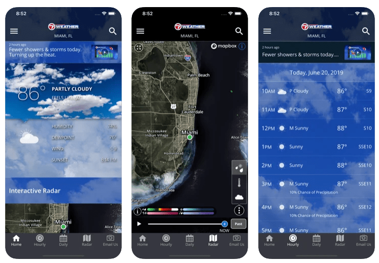 Use the live interactive radar for the area that matters to you by using your finger to slide around and zoom in on the map.