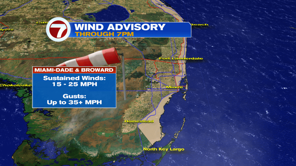 A Wind Advisory will be in effect for Coastal Broward and Miami-Dade through tonight with occasional gusts up to 35 mph. This can toss unsecured loose objects like Christmas decorations. Also, it could making driving difficult if you have a high profile vehicle, so drive with extra caution.